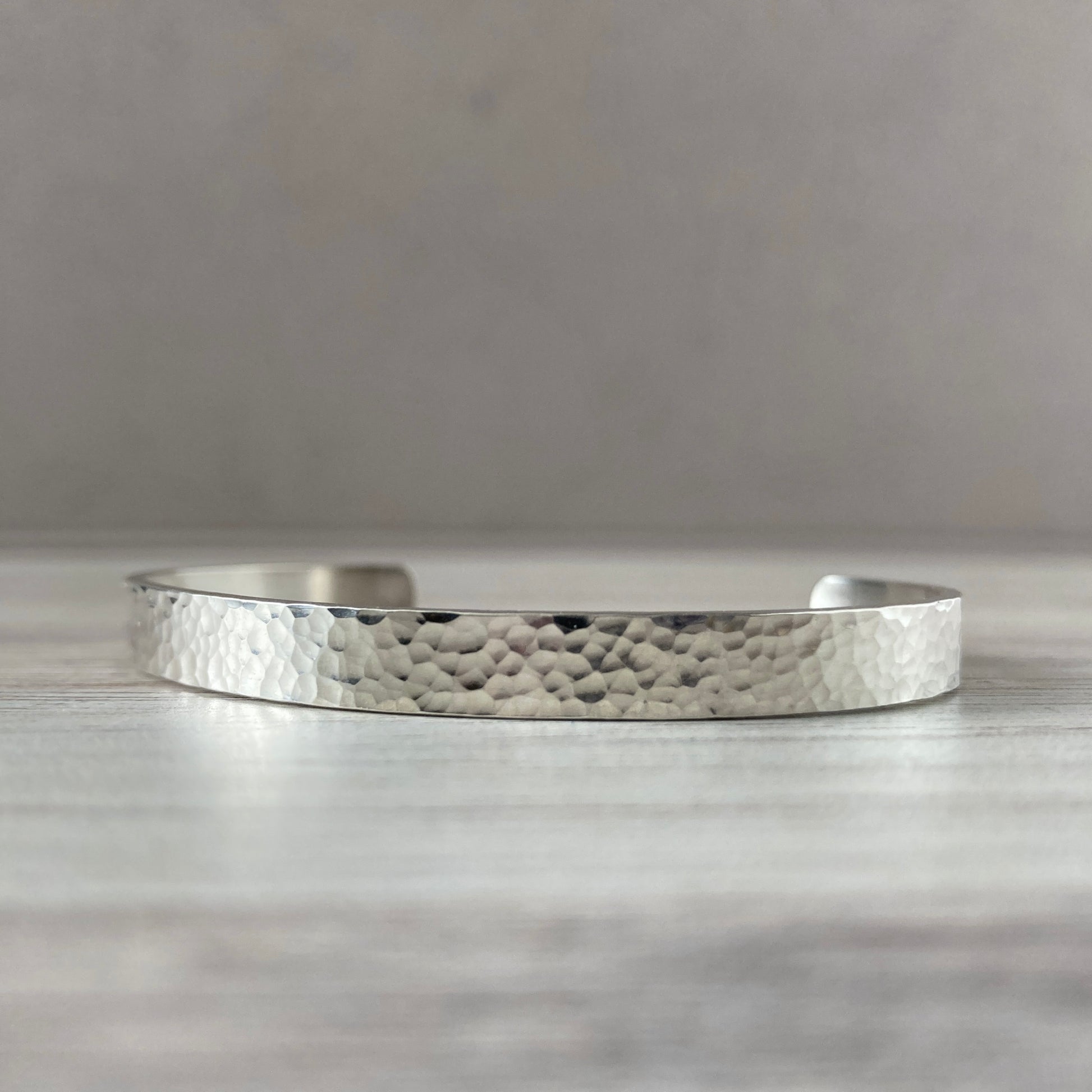 Sterling Silver cuff bracelet. Hammered by hand. 4mm wide. Available in 5 sizes. Made to order please allow 5-7 business days before shipping.